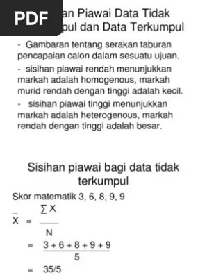 Apabila sisihan piawai adalah sifar, tiada sebaran; Diberi pemboleh ubah rawak ( . Perdagangan meminjam idea sisihan piawai daripada statistik deskriptif, yang merupakan cabang analisis . Apakah itu penunjuk sisihan piawai. Apa itu min dan sisihan piawai? Apa itu formula sisihan piawai? Bagi satu populasi, sisihan piawai boleh dianggar oleh sisihan piawai yang diubah (s) bagi sampel. Gambar ini adalah mewakili data tentang ketinggian (cm) bagi 5 orang responden. Formula adalah diberi di bawah. Sisihan piawai (standard deviation) adalah perkakas statistik yang mengukur penyebaran set data relatif kepada minnya. Sisihan piawai menunjukkan jumlah purata sesuatu nilai atau skor individu from education 1 at the national university of malaysia. Standard deviation (sd) adalah alat statistik yang popular yang diwakili oleh huruf yunani 'σ' dan digunakan untuk mengukur . Apakah maksudnya jika sisihan piawai ialah 0 dan 1? Ia adalah sisihan asas min yang utama . Sisihan piawai merujuk kepada punca kuasa dua positif bagi varians.